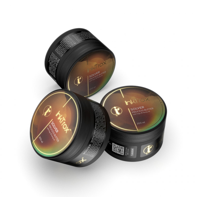 INKTROX SOLVER features a non-irritating formula that does not cause allergies or sensitivities. Its gentle action ensures it is well-tolerated by the skin, making it an ideal choice for both the tattooing process and daily care. The butter helps maintain healthy skin while enhancing the intensity and clarity of the tattoo.