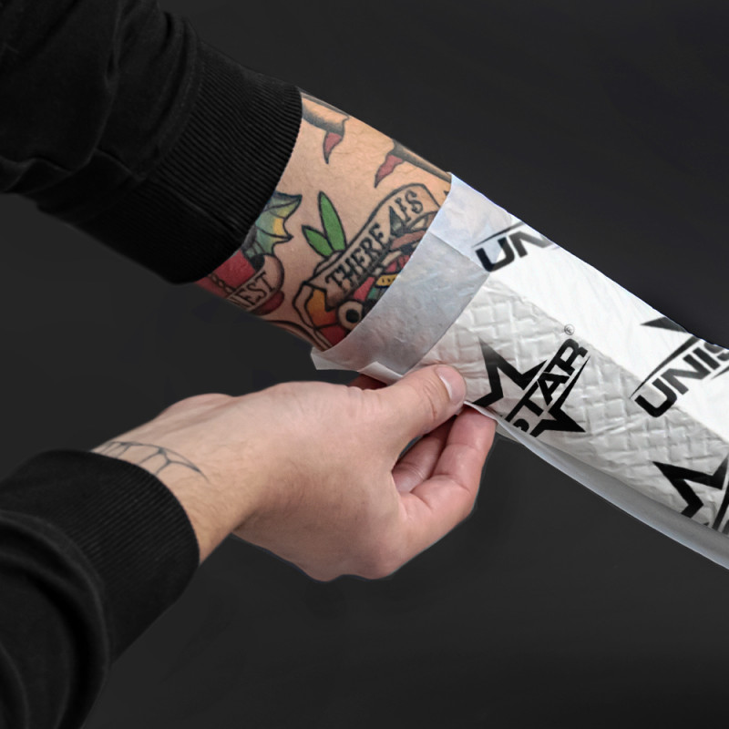 With three layers, Skin Care Soaker Pads are extremely functional and mega-absorbent. The outer layer is waterproof and provides effective protection of the tattoo from the external environment. The middle layer effectively absorbs fluids. While the soft and breathable inner layer guarantees comfort and hygiene for the skin irritated by the tattooing process. With this solution, you can be sure to provide your customers with the highest quality of post-tattoo care.